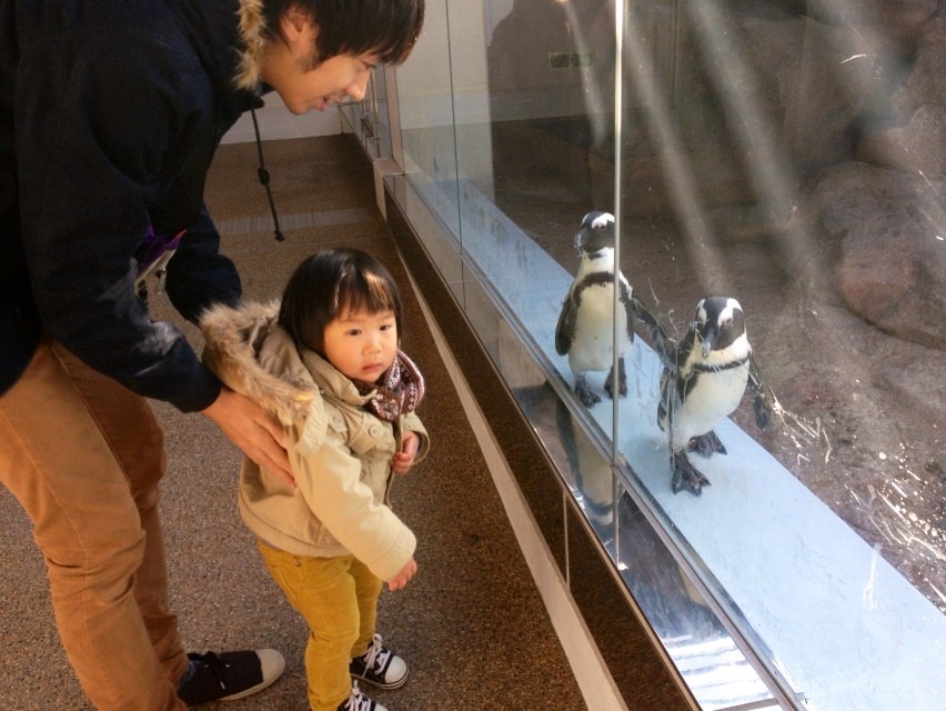 途中から疲れて抱っこぉ~となったけど、海の生き物達に興味津々!