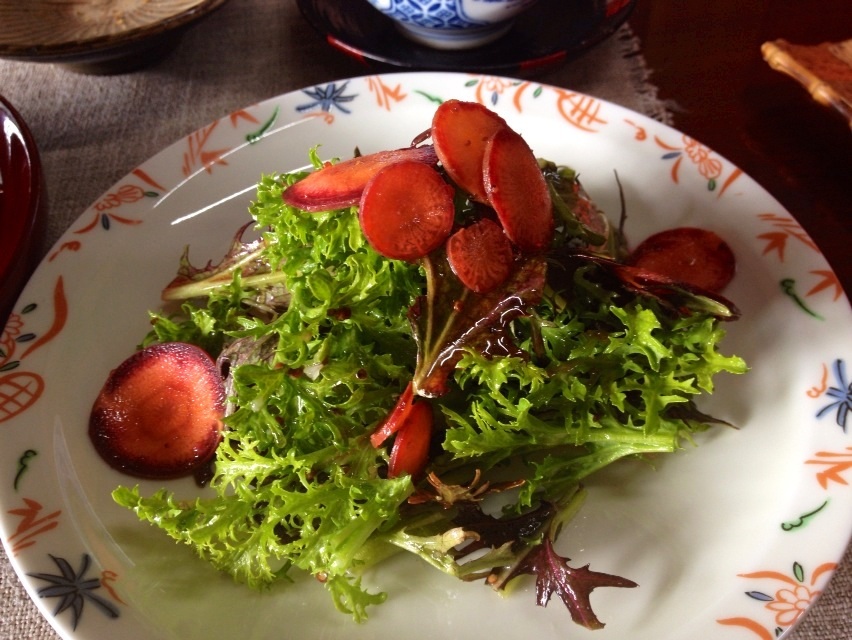 紫人参とわさび菜のサラダ。