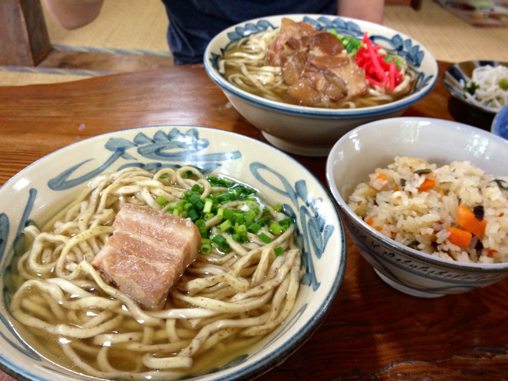 麺が太くてうどんみたい。ごはんはじゅーしぃーと言うそうで★