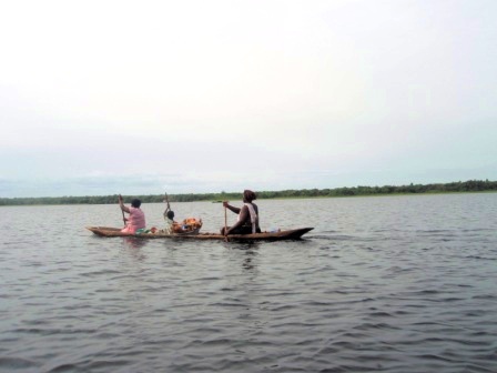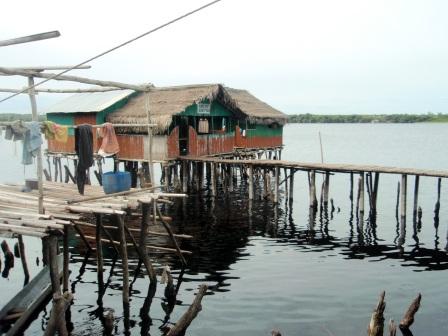 炎天下の中をひたすら漕ぎ、Nzurezoに到着。本当に湖の上に村があり、陸とはつながっていない。