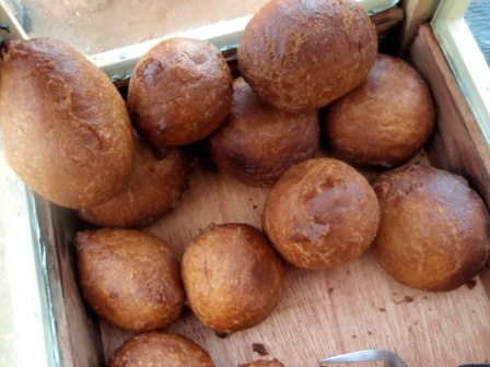 ボールフルーツ(ドーナツみたいなもの)を売りたいという彼女の気持ちはずっと前から聞いていた。材料は自分で買える。でも1個約15円のボールフルーツを売るために、頭に乗せて運ぶ約600円のケースが買えない。自分で何とかできるなら、その方が良い…とも思う。でも収入の無い彼女が切羽詰っているのも十分分かる。葛藤もあるが、私はもうすぐ帰るし、彼女が新しいスタートを切るのを見届けたかった。