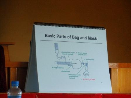 内容は新生児出生時の蘇生ケア。けっこう高度な内容で、プロトコル化された一連のケアを勉強した後、正常、異常の判断の仕方、アンビューバッグの使い方を中心に学んだ。(今はアンビューバッグとは言わないらしい。Self-Inflapping Bagと言うのだそう。日本でもそうなったのかしら…?)