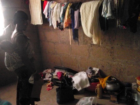 その日の夕方、彼女宅を訪問し、家の状況を見せてもらった。被害に遭ったのは、鍵のかかったカバンに入れていた彼女の全所持金32GHC(うち、10GHCは他人から借りているもの)、水筒など日用品の3点。