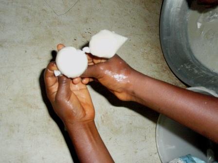今年1月、うちの郡のHIV陽性者グループがJICAの援助を受けて始めた石鹸作り。2月以降は自分たちだけで続けていくことを目標にしているが、1月の2日間でかなりたくさんの石鹸を作ったので、先月のミーティングまでにはそれら全てを売り切ることができなかった。そこで先月のミーティング時には、今月のミーティング時までに売り切り、全員がお金をバックし(売上の一部は本人に収入となる)、2回目の石鹸作りを実施しようと話し合っていた。