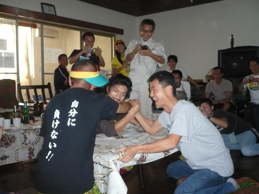 ゲームも盛り上がり、ガーナ事務所の新所長(右)も参戦。