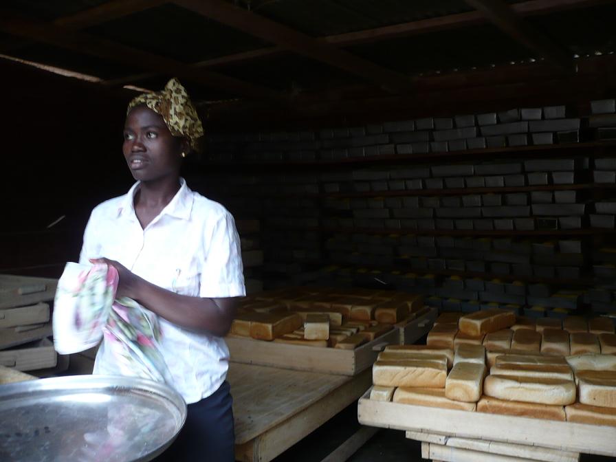 この工房では1日600本もの食パンを製造している。20+αの顧客がいるそうで、shop側は4000セディで購入し、5000セディで販売。儲け、意外に少ないか?まぁ、消費者としては嬉しい限りやけども。
