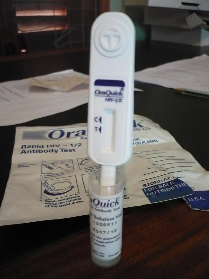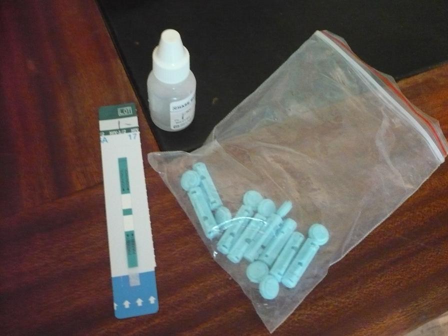 HIVテストはRapid Testを使っている。日本では取り扱っていない所も多いが、ガーナではこれが一般的。簡単なテストで、指に針をちょっと刺し血液を2滴たらし、15分ほど待てば結果が出る。これで陽性という結果が出た場合、偽陽性という可能性もあるので、確認検査が必要になるが、陰性の場合は確実に陰性。