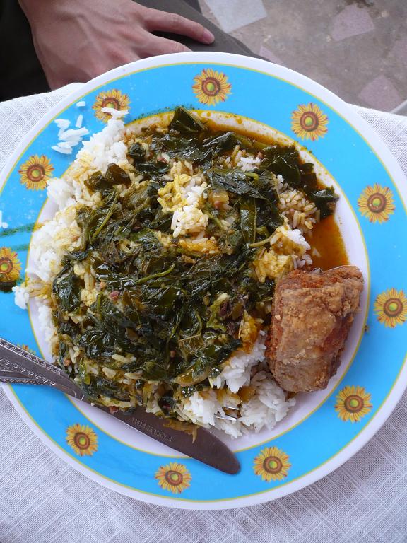以外に、こんな普通のチャーハンのようなメニューもあったりします。でもこれがあるお店は、ちょっと高い印象。あんまり現地食とは言えないのかも。米は日本のように丸い米ではなく、タイ米のように細長く、パサパサしている。味は、店によって激辛だったり、全然辛くなかったりするので、辛いときはハズレだ・・・と凹みながら食べます。
